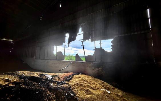 В результате удара повреждены шесть единиц техники, а также кровля и стены двух зерноскладов. На территории предприятия возник пожар, который был оперативно ликвидирован силами самих сотрудников. К счастью, обошлось без пострадавших.