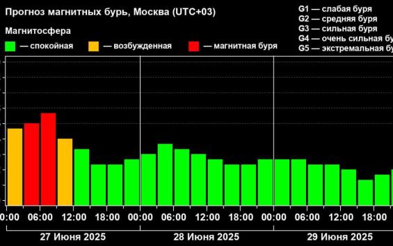 Ожидается, что во второй половине дня геомагнитная активность начнёт снижаться и полностью прекратится к субботе. В ближайшие сутки буря будет колебаться от слабой до средней интенсивности — классы G1–G2.