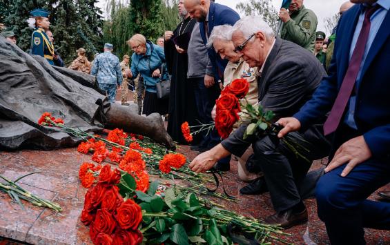 В Георгиевском сквере Курска, в День ветеранов боевых действий, прошла церемония возложения венков и цветов к памятнику «Скорбящая мать». Жители города почтили память погибших воинов минутой молчания.