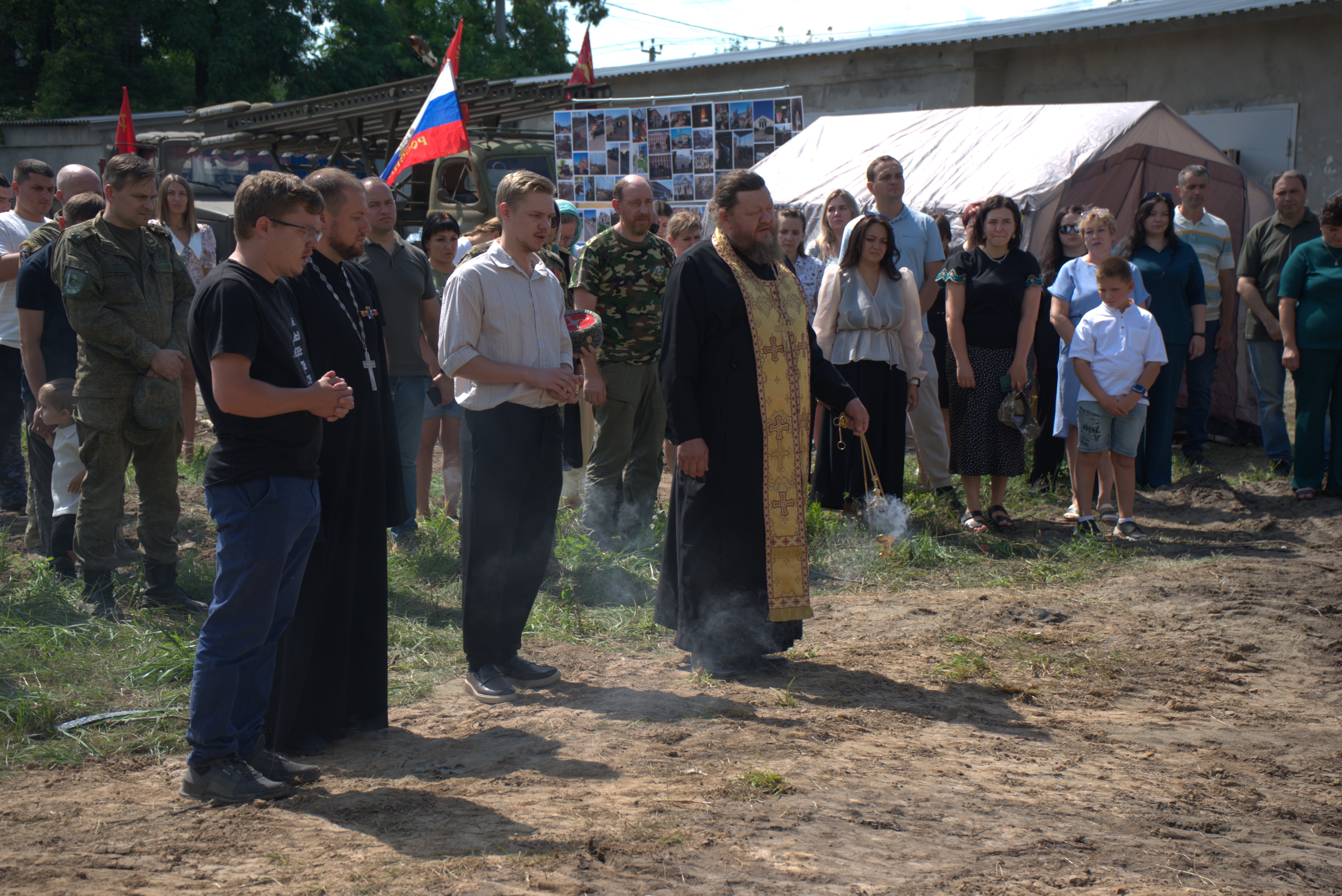Сегодня на территории волонтерского склада «Вместе», организованного Романом Алехиным, почтили память погибших. Панихиду провел отец Евгений.