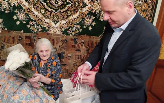 Курянка Анастасия Андриановна Сидорова отпраздновала свой вековой юбилей. С днём рождения её поздравил председатель комитета социальной защиты населения Сергей Брежнев.