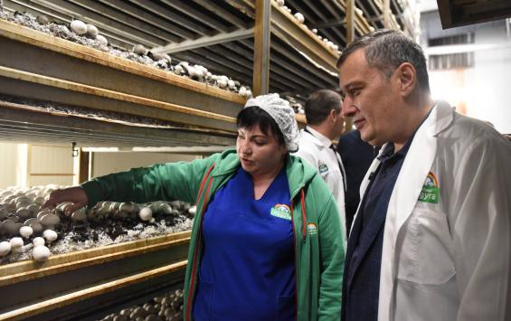 Александр Хинштейн посетил крупнейшее грибное производство Курской области «Грибная радуга»