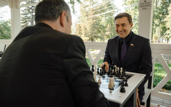 Он встретился с Александром Хинштейном: обсудили совместные проекты и провели партию в шахматной беседке Первомайского парка. «Итог партии был предсказуем, но приятно, что удалось продержаться целых 15 ходов», — пошутил врио губернатора.