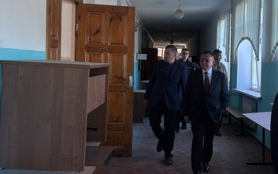 Врио губернатора Курской области Александр Хинштейн и министр строительства и ЖКХ РФ Ирек Файзуллин посетили село Большое Солдатское Большесолдатского района, где осмотрели объекты, включённые в первый этап программы восстановления.