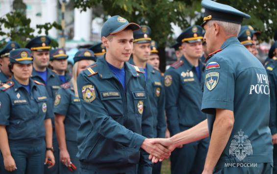 В Курске новобранцы МЧС приняли присягу у Памятного знака пожарным и спасателям