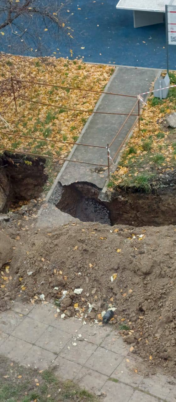 По всей видимости, именно здесь располагается поврежденная рабочими труба. Из-за этого инцидента в сентябре дома какое-то время оставались без водоснабжения. Да и сейчас дела обстоят не лучше. Интересно, что на замечания людей строители реагируют крайне негативно, ругаясь и используя нецензурную брань.